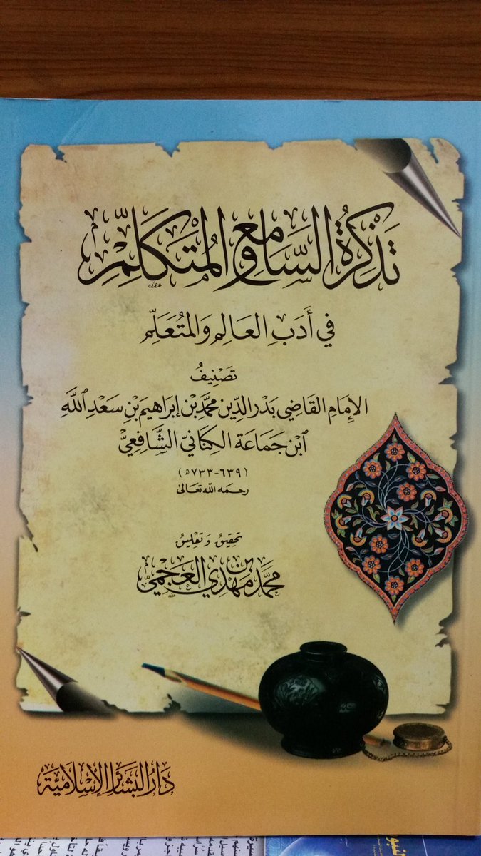 نادي الكتاب בטוויטר تذكرة السامع والمتكلم في أدب العالم والمتعلم بدر الدين بن جماعة الكتاني تحقيق محمد بركات 40