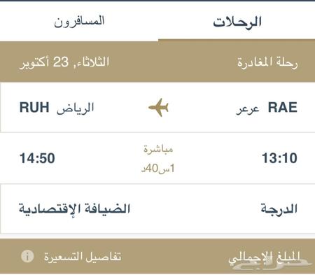 تذاكر سفر من عرعر الى الرياض لشخصين