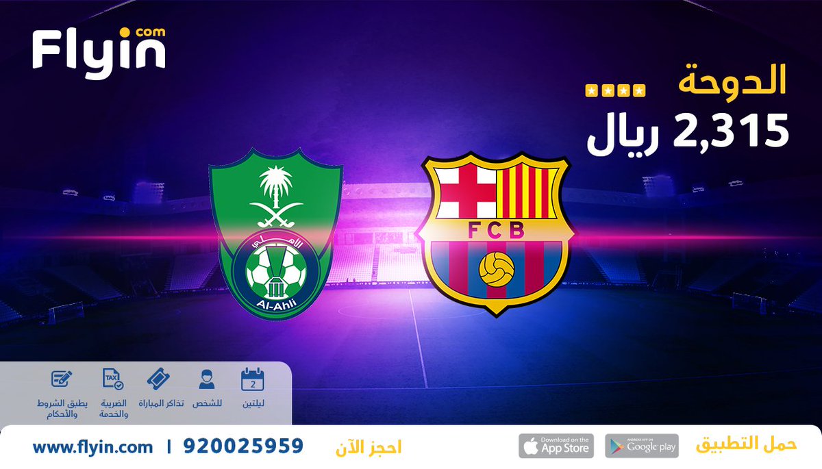 Flyin Com فلاي إن On Twitter ودك تحضر مباراة الاهلي السعودي وبرشلونة الودية في الدوحة عرض ليلتين تذاكر المباراة للحجز كلمنا 920025959
