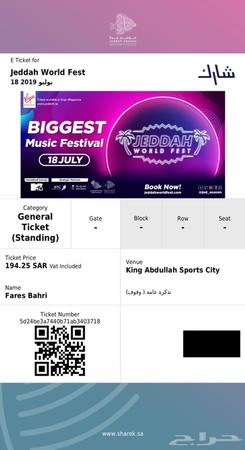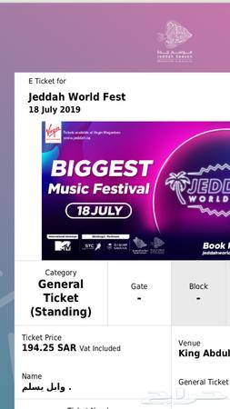 3 تذاكر للبيع لحفل Mtv في جده