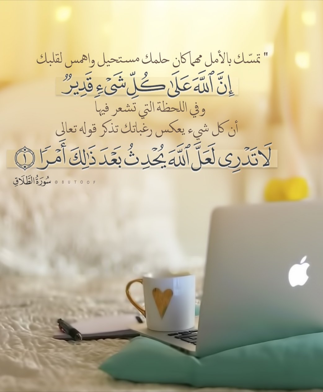 تمسك بالأمل مهما كان حلمك مستحيل واهمس لقلبك ان الله على كل شيء قدير وفي اللحظة التي تشعر فيها أن كل شيء يعكس رغباتك تذكر قوله تعالى لا تدري لعل