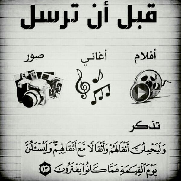 Nasser Alahmary ناصر الأحمري On Twitter قبل ان ترسل اغاني صور افلام تذكر قوله تعالى وليحملن أثقالهم وأثقالا مع أثقالهم وليسألن يوم القيامة عما كانوا يفترون Http T Co Lv5wzf0orn
