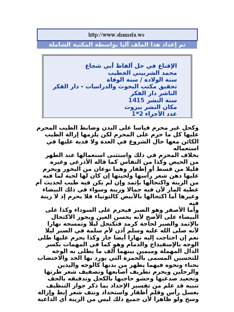 الإقناع في حل ألفاظ أبي شجاع الخطيب الشربيني 1
