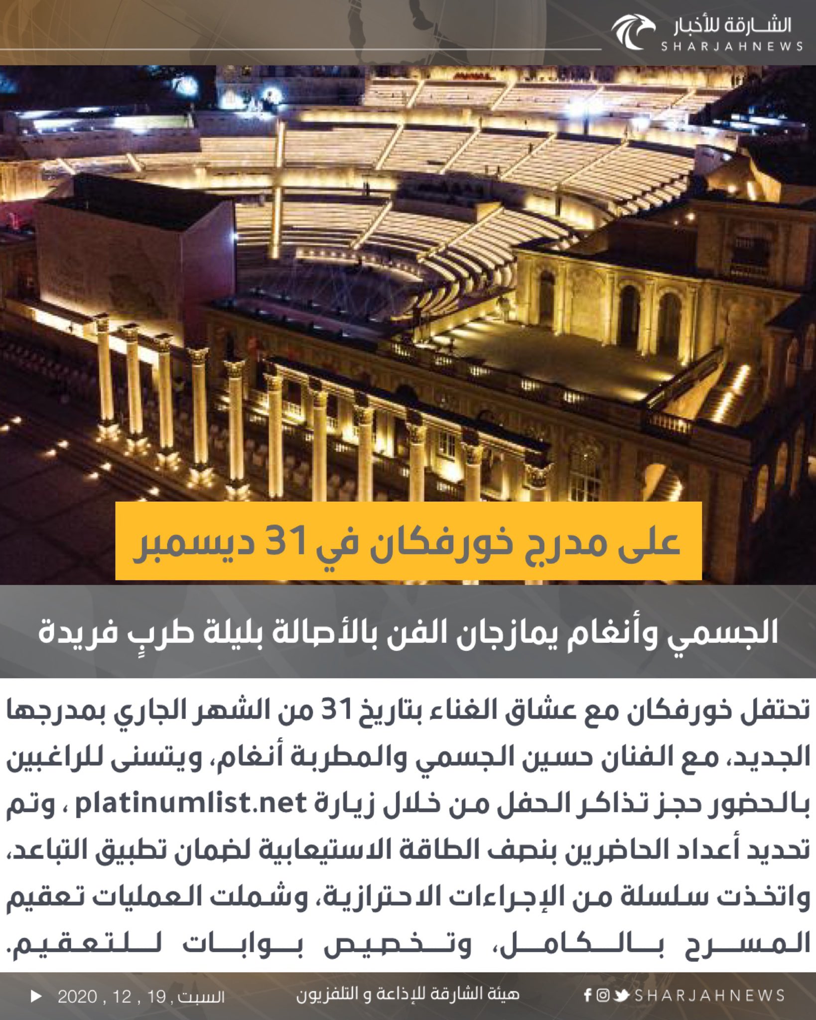 أخبار عجمان الجسمي وأنغام يحييان ليلة رأس السنة في خورفكان أخبار الفعاليات فعاليات فعاليات الإمارات الإمارات الشارقة خورفكان