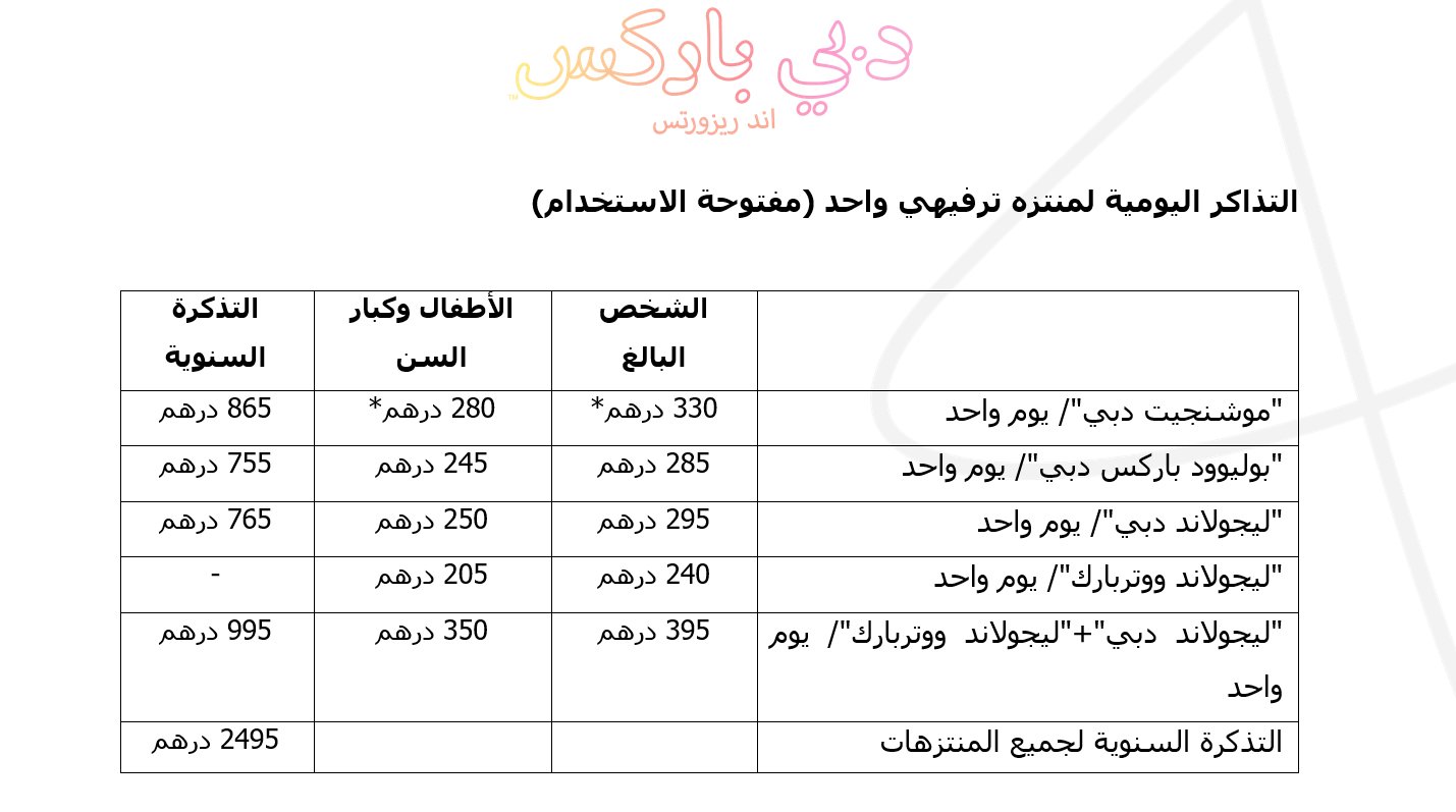 اسعار تذاكر دبي باركس Dubai Parks دبى باركس أسعار اليوم
